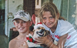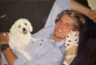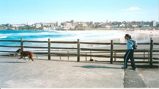 Steve's cousin Julie with her dog on the Sydney foreshore