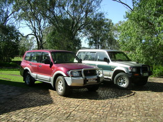 Sue's and Steve's Pajeros parked at Hastings Roas |