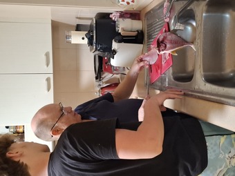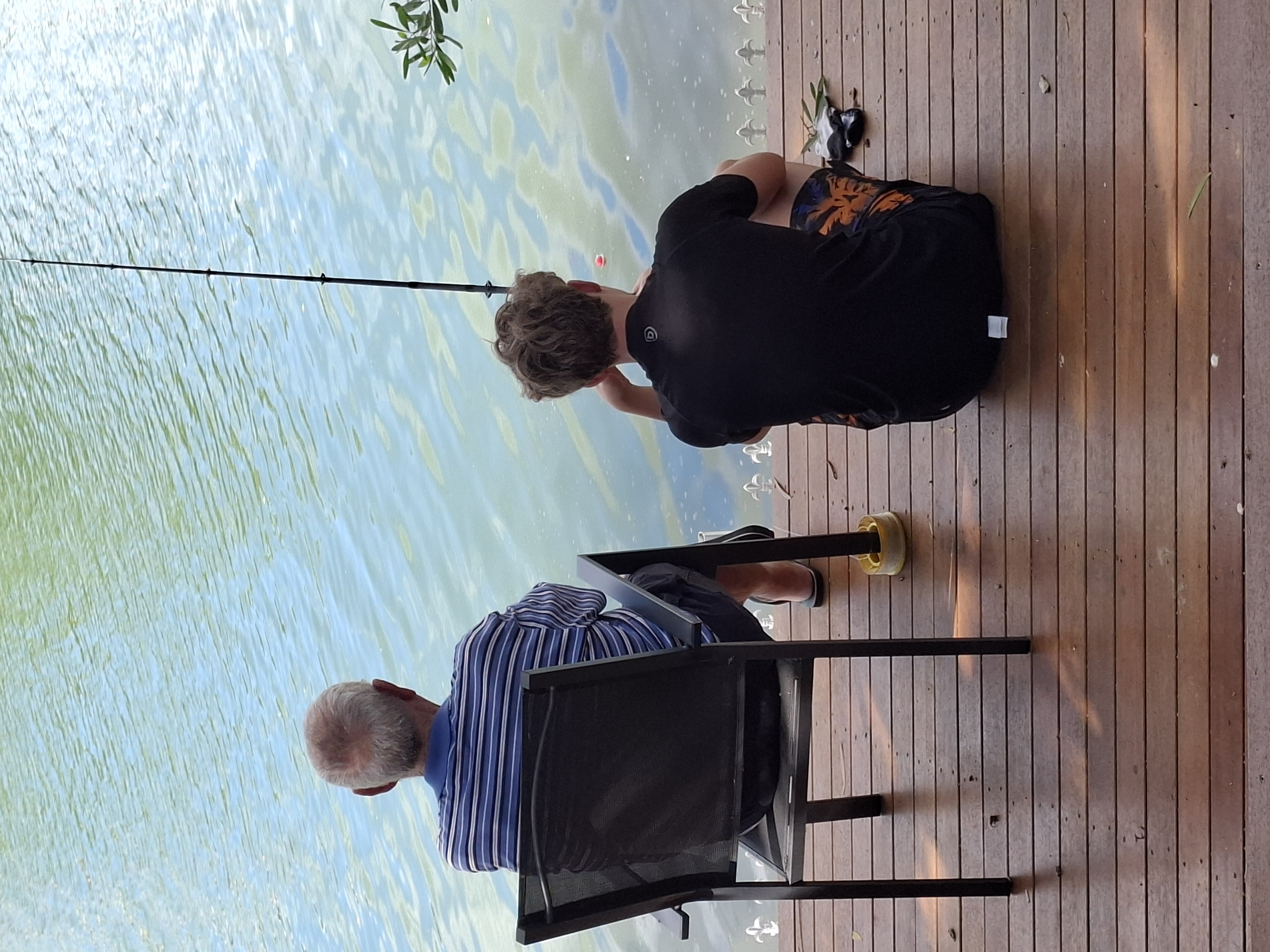 A lesson from Dad about cleaning and filleting fish,.Didn't need help with cooking and eating however. |