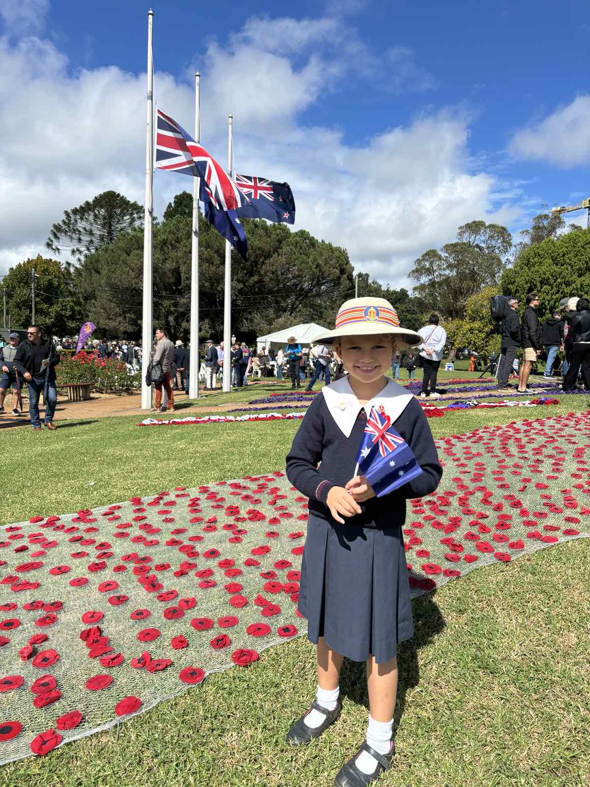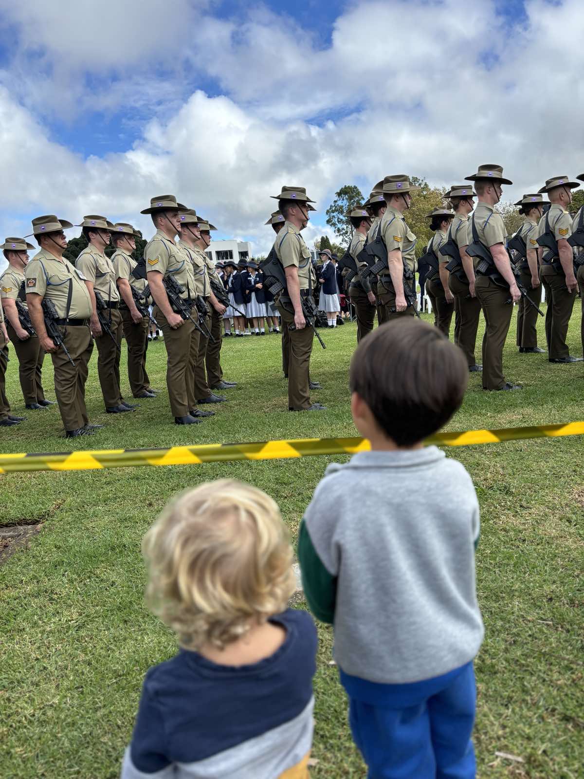 Freddy and Hamilton watch the Anzac Day procedures |