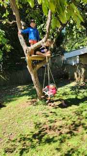 Tree house and swing on the one tree |