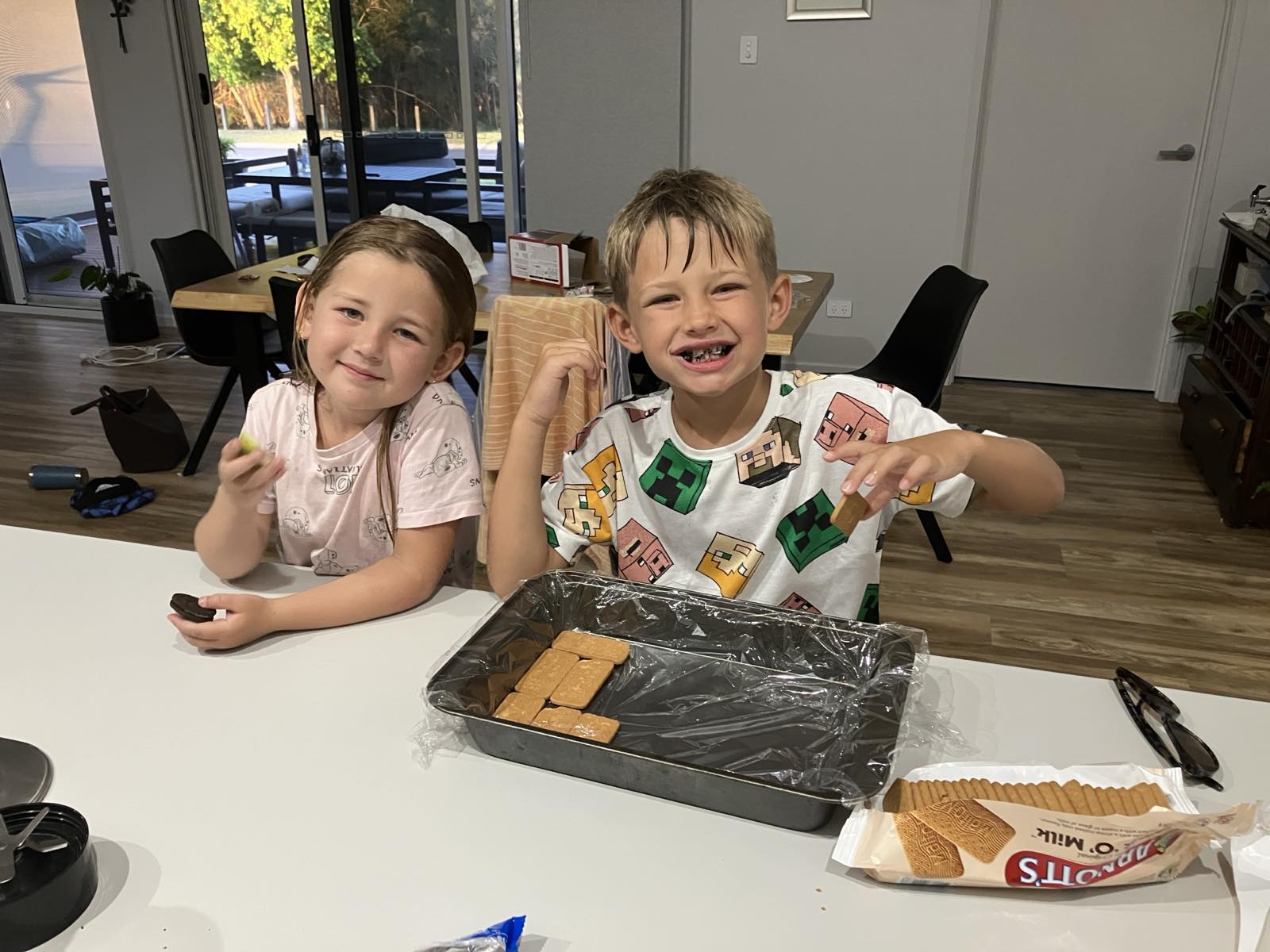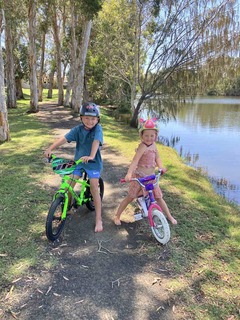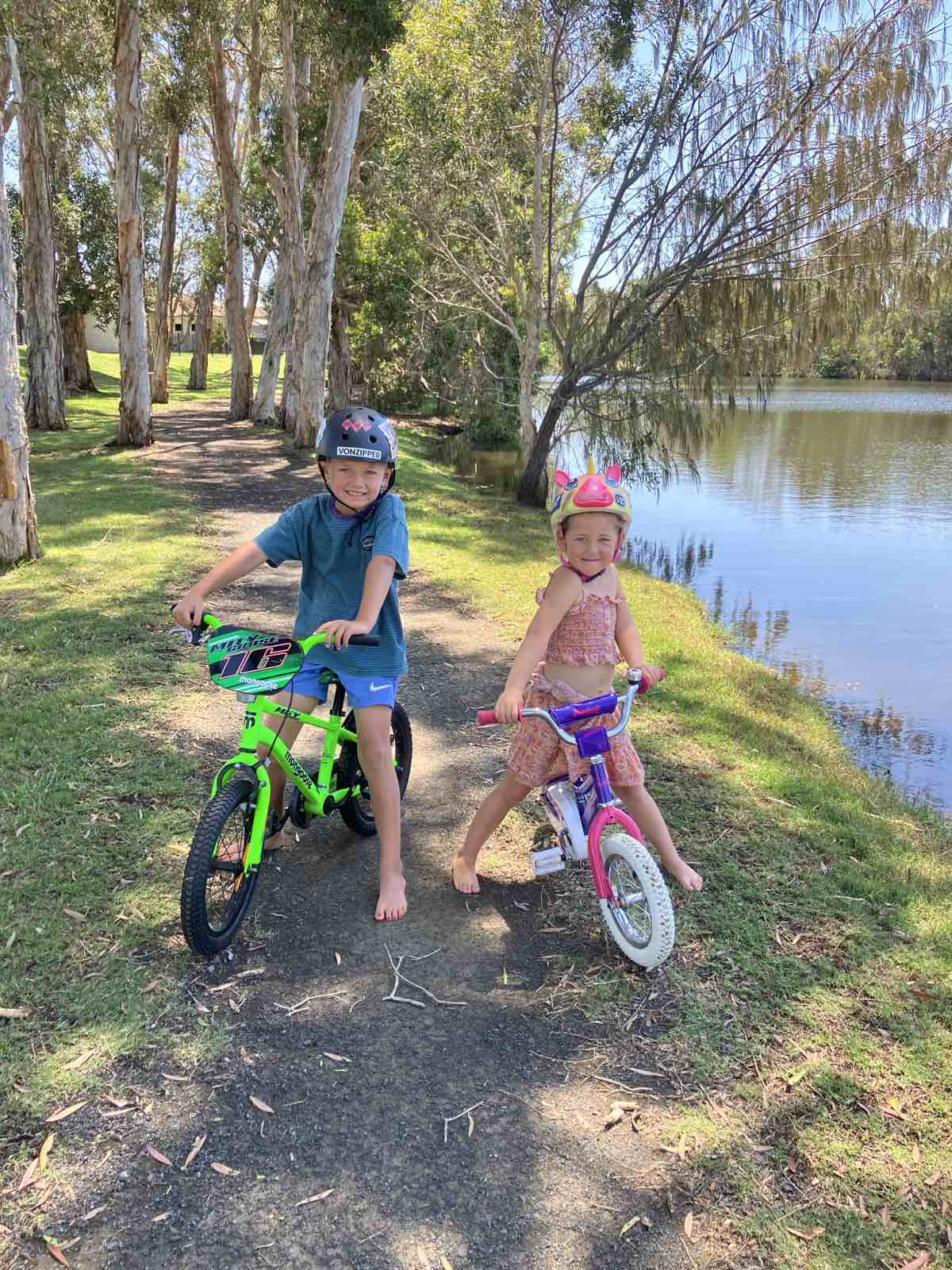 Billy and Lola bike riding beside the second lagoon which contains permanent water