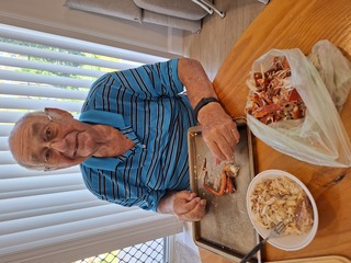 Merv cleans a mud crab for lunch...Crab meat in plate |